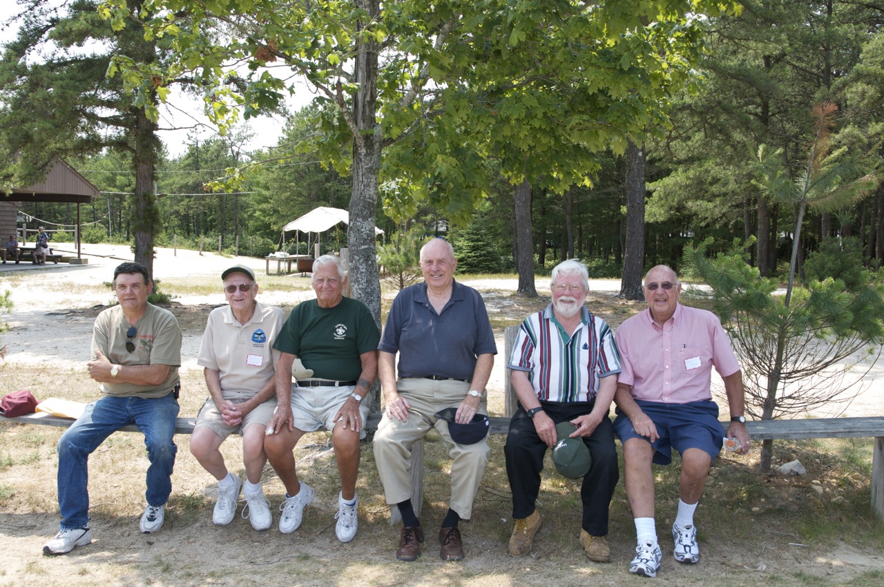 Alumni at Homecoming who had camped at Cachalot in the 1940s. From left to right: Larry Roy, Larry Harney, Norm Chartier, Ray Covill, Bill Gifford, Doug Pfeninger.